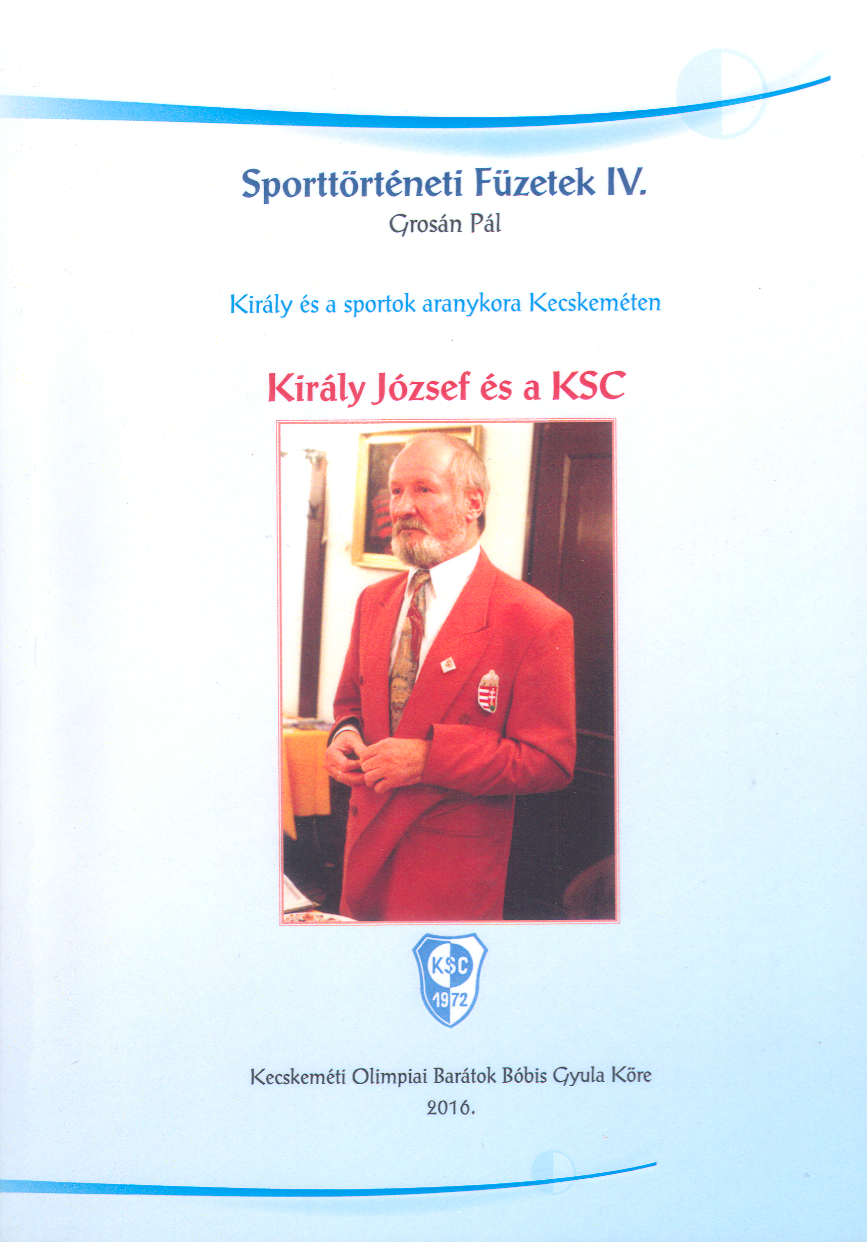 2016-ban jelent meg a Grosán Pál tanár úr tollából, a Kecskeméti Olimpiai Barátok Bóbis Gyula Körének gondozásában a Sporttörténet füzetek IV. része . A könyv Király József Zoltán ( A kecskeméti Sport Club elnöke) önéletrajzi írása alapján Kecskemét sportjának aranykorával ismertet meg minket.